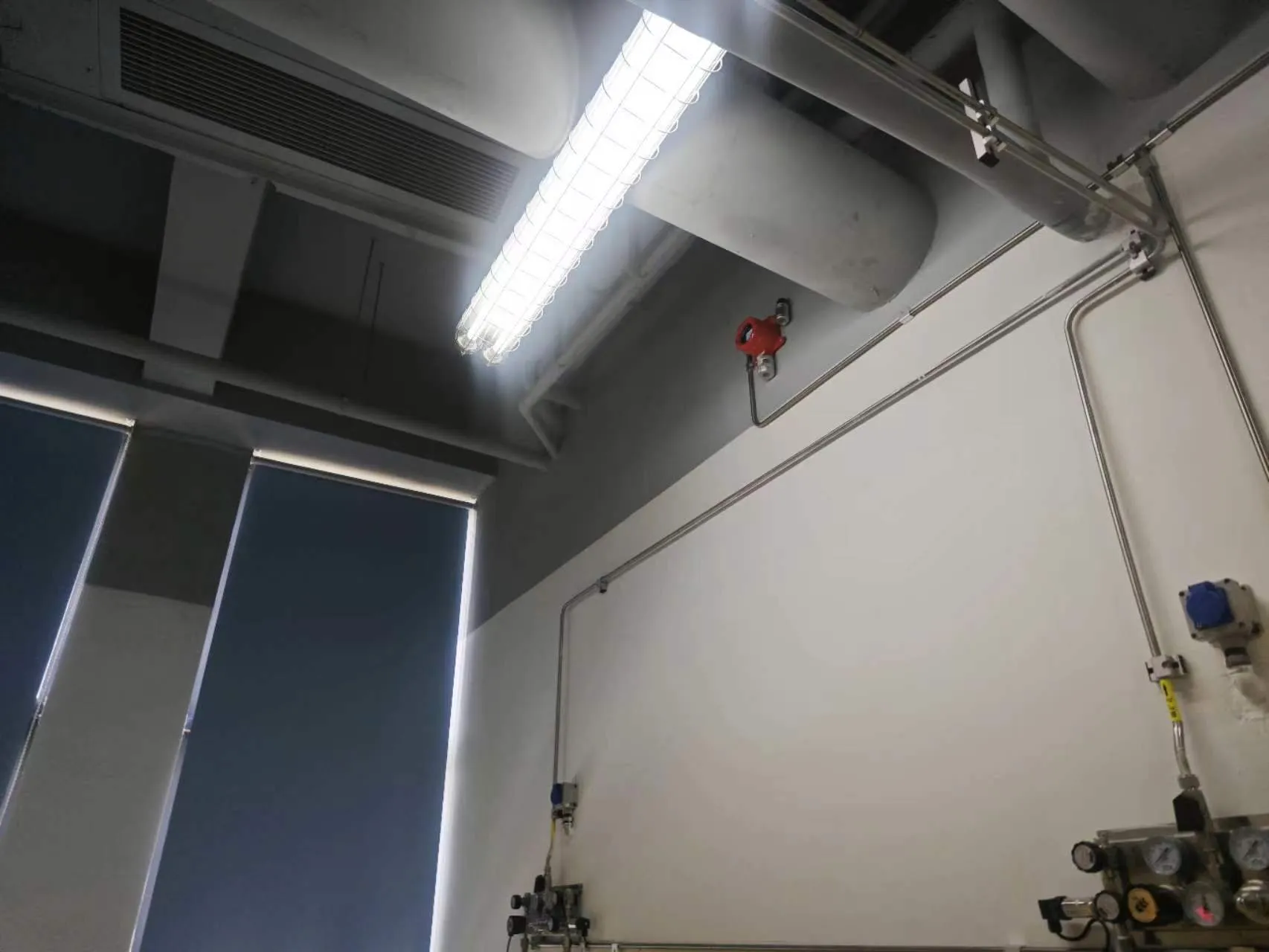 气瓶间是集中安置气体钢瓶一起供气的地方。实验室用气除不燃气体(氮气、二氧化碳)、惰性气体(氩气、氦气等)外,其他气体具有高压、剧毒、氧化分解、爆炸等危险性气体,例如易燃气体氢气、一氧化碳;剧毒气体为氟气、氯气;助燃气体为氧气等,这些气体不得放置在实验室内,需要设置单独的气瓶间,安装独立气瓶柜,通过管子接到各个实验室中。
