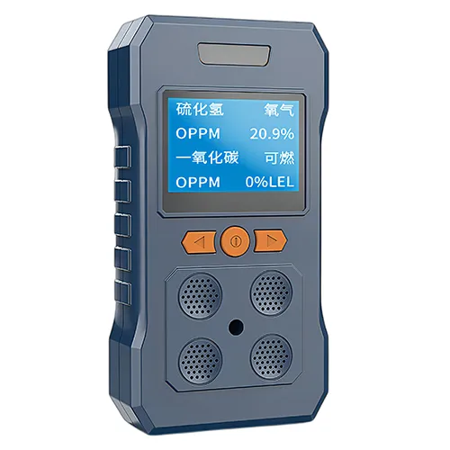 便携式语音型四合一气体检测仪(以下简称检测仪)是一种可连续检测泄露气体浓度的安全型设备。采用了先进的集成电路技术、嵌入式微机控制,优质的进口气体传感器,具有优秀的灵敏度和出色的重复性;使用TFT液晶屏,支持中英文界面和中英文语音提示,用户可以快速的了解本产品,使用及维护简单;外壳采用高强度工程塑料,抗震好,强度高,外型高档大气并具有防尘防水防爆功能。