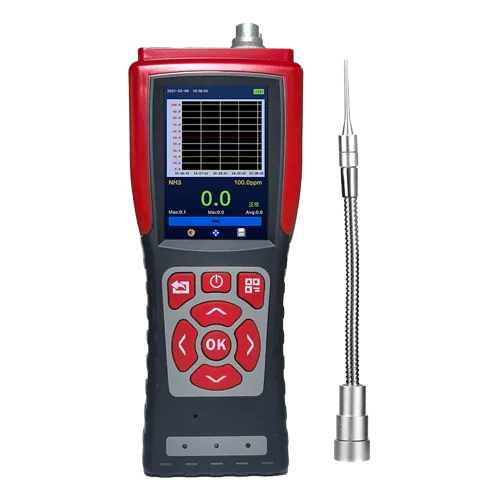 - 高精度温湿度测量(选配),同时对传感器进行温度补偿,仪器使用温度范围-40~70 度,可检测 400 度的气体,更高温度的气体检测可订制(选配高温采样降温过滤手柄或高温高湿预处理系统。